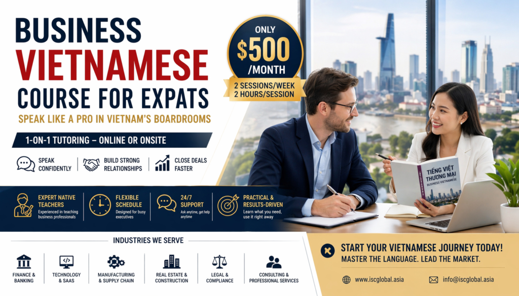 Vietnam is no longer just a manufacturing hub — it’s one of Asia’s fastest-growing economies, home to unicorn startups, multinational regional headquarters, and some of the most dynamic markets in Southeast Asia. Yet most foreign executives still run meetings entirely in English, missing the subtle cues, relationship-building moments, and negotiation nuances that happen in Vietnamese.